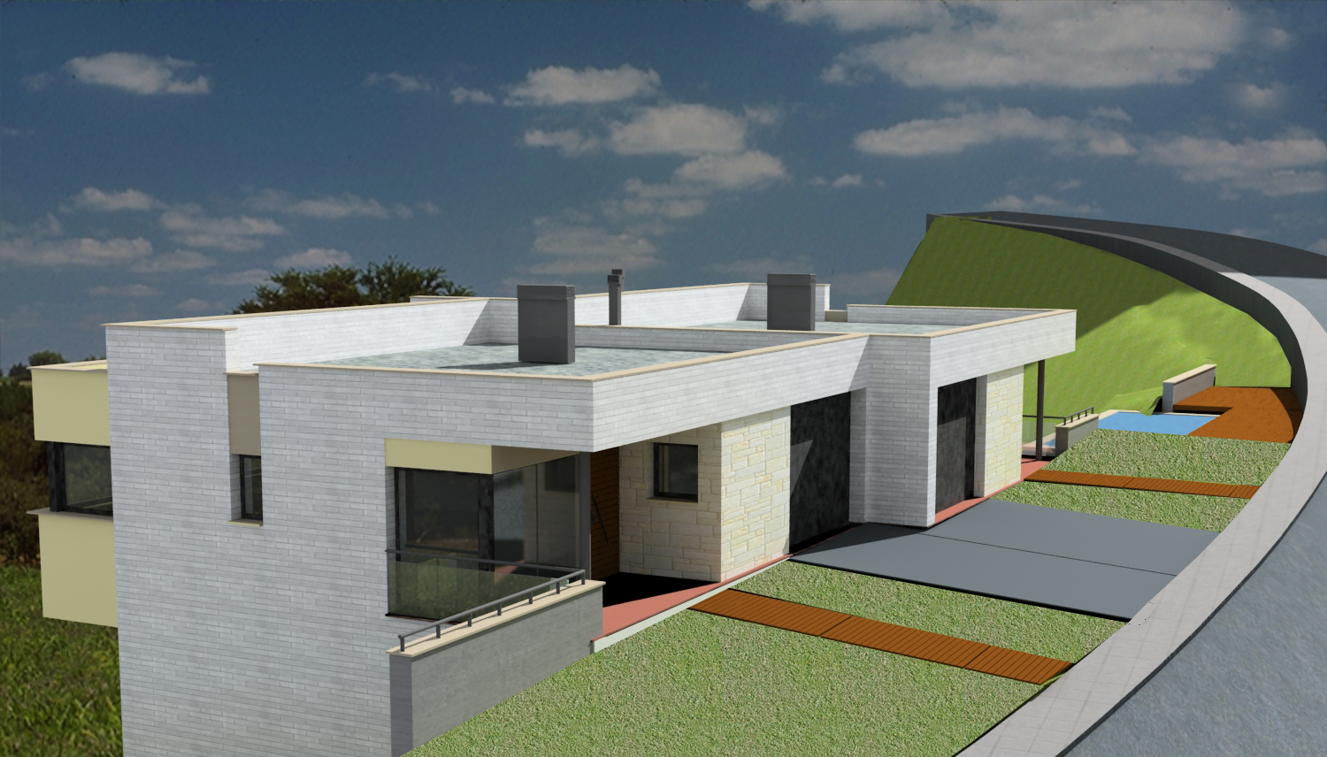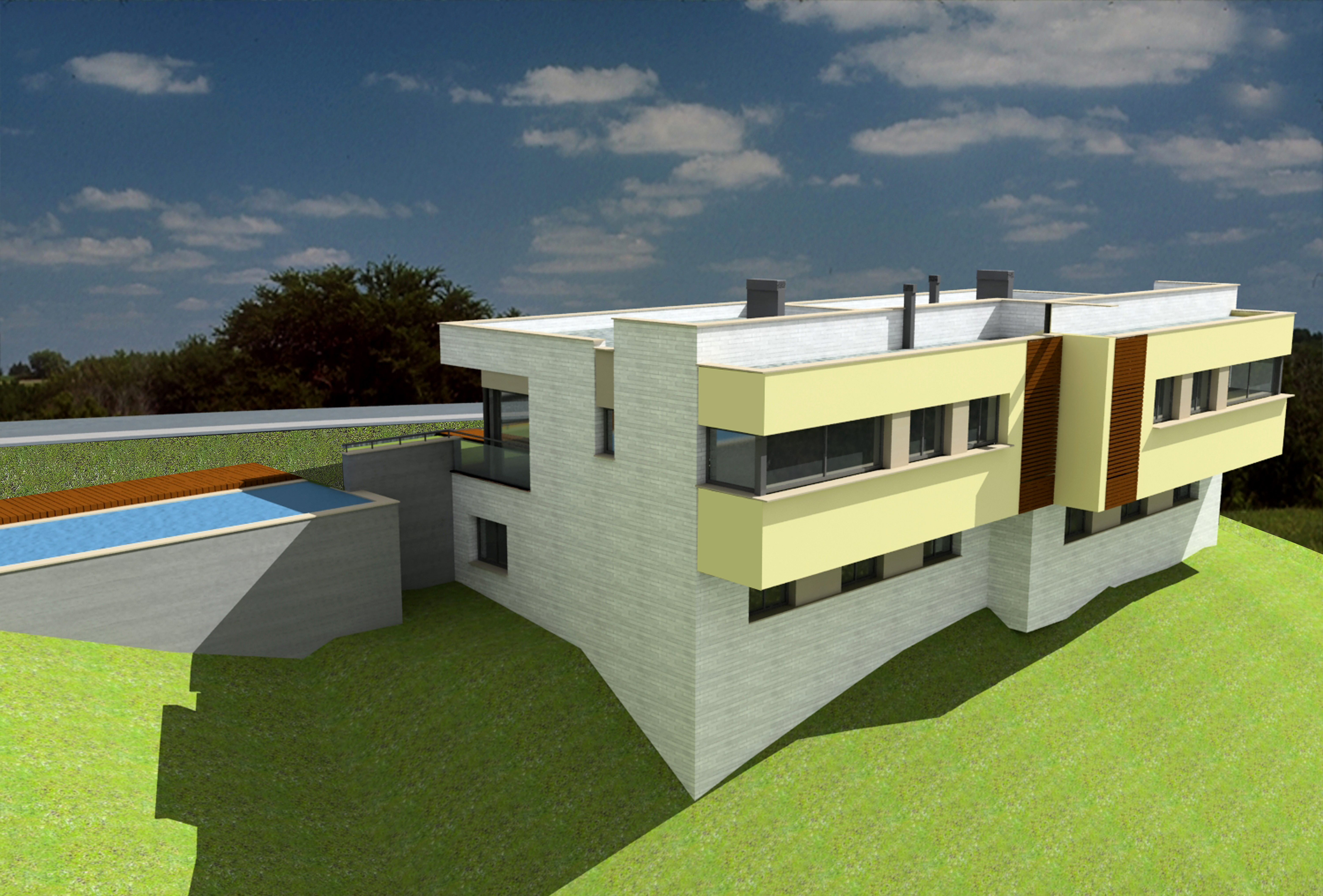 Vivienda bifamiliar aislada en Terrassa. Actualmente se encuentra en proceso de construcción.